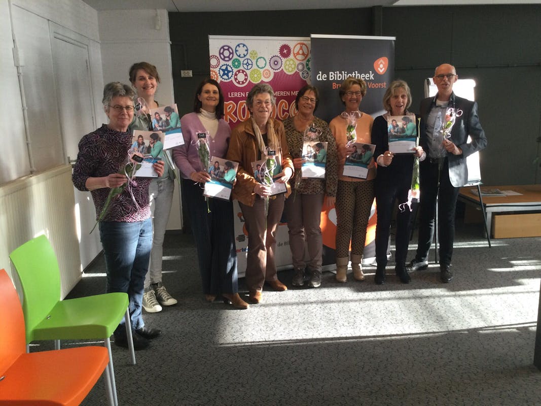 Bij de Bibliotheek in Twello kwam een groep enthousiaste taalvrijwilligers vier weken lang op de maandagmiddag bij elkaar om de basistraining taal van Stichting Lezen en Schrijven te volgen. Tijdens deze training leerden de vrijwilligers hoe zij mensen met taalvragen goed kunnen begeleiden, uitleg kunnen geven en uiteindelijk zelf aan de slag te laten gaan met taal. Alle cursisten behaalden een mooi certificaat en zijn allemaal enthousiast om aan de slag te gaan.