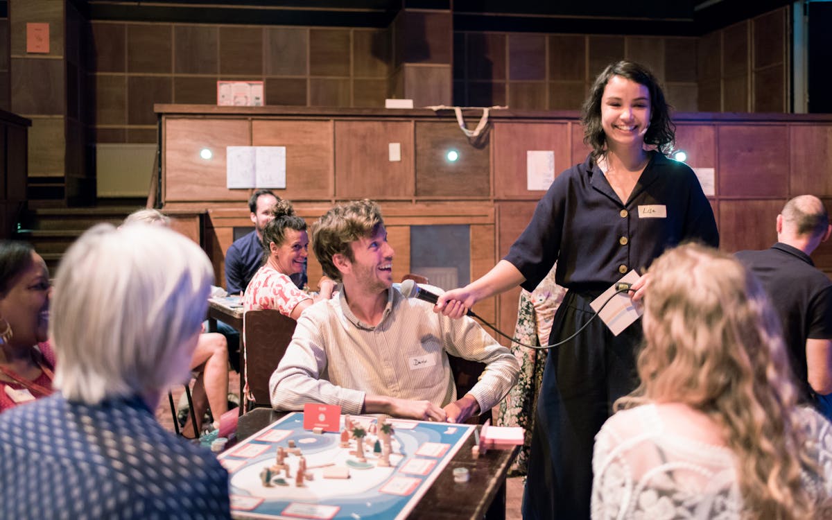 In de workshop rond het prijswinnende dialoogspel Terra Nova Minimaatschappij bouw je de wereld waarin je zelf zou willen wonen. Jouw team staat aan het roer van een nieuwe samenleving, terwijl de spelvragen je moreel kompas op de proef stellen. Het houten spelmateriaal maakt maatschappelijke problemen op een luchtige manier bespreekbaar. Omdat de vragen heel divers zijn, is er altijd wel een onderwerp waar jij je (extra) bij betrokken voelt. Zo kan iedereen meedoen. Van jong tot oud en van man tot vrouw. Je gaat naar huis met een frisse kijk op maatschappelijke onderwerpen. Welkom in de Bibliotheek.