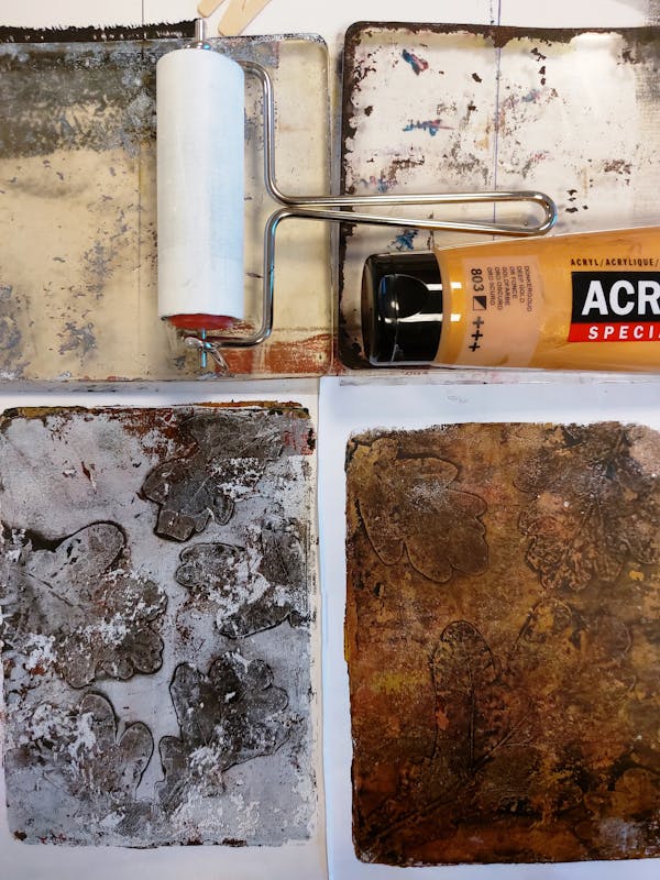 Geef je creativiteit een boost en doe mee aan deze leuke workshop en leer de basis van het maken van monotypes met de Gelli Plate. Je leert hoe je met verschillende materialen kunt werken zoals gedroogde bladeren en (zelfgemaakte) sjablonen maar ook hoe je een interessante compositie opbouwt in kleur, vorm en textuur.