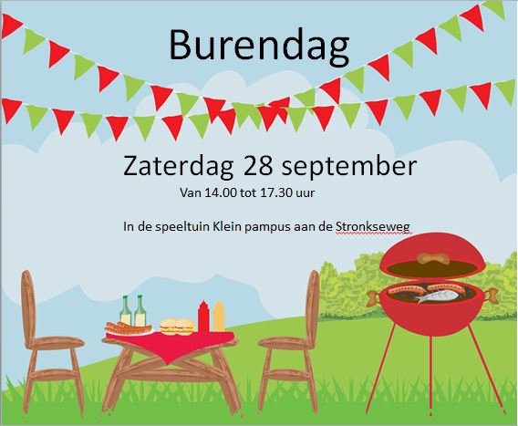 Op 28 september is er de jaarlijkse burendag, Vereniging ‘Klein Pampus” gaat op deze dag een leuke middag organiseren voor de kinderen in de speeltuin van 14-16 uur